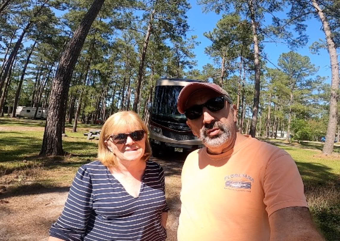 We stayed overnight at New Green Acres RV Park in Walterboro SC. Big Rig Friendly. It was an easy on/off from I-95 in South Carolina. We did read comments that indicated you could miss the entrance due to a small sign but we had no problem. The GPS does try to send you to the left instead of right but there was a small RV Park sign at the turn on to the road leading to the campground, and we had no problem seeing the entrance sign. Check-in was done with very little contact with staff. This campground advertises "the longest and widest pull-thrus east of the Mississippi" and boy are they right! The campground is older but nicely maintained. Beautiful Southern Pines filled the campground. Very good overnight spot when traveling I-95.